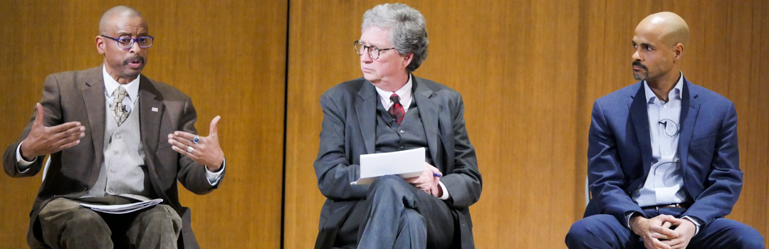 On December 6, the Friends of the Takoma Park Maryland Library co-hosted (with the City of Takoma Park’s Arts and Humanities “We Are Takoma” Cultural Series) a panel discussion, “At the Intersection of Race, Sports, and Law,” in the Takoma Park Community Center auditorium. The event featured N. Jeremi Duru, who grew up in Takoma Park and is now a professor of sports law, civil procedure, and employment discrimination at American University Washington College of Law. He was joined by E. Ethelbert Miller, poet, writer, and literary activist, who served on the board of the Institute for Policy Studies (IPS) founded by Marcus Raskin, father of Jamie Raskin.