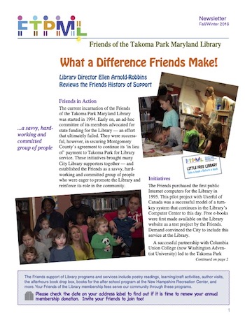 Join the Friends of the Takoma Park Library and support our education and outreach efforts! Become a Member